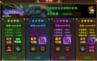 方式三:顶级赞助,灵符购买赞助快速提升转生等级。