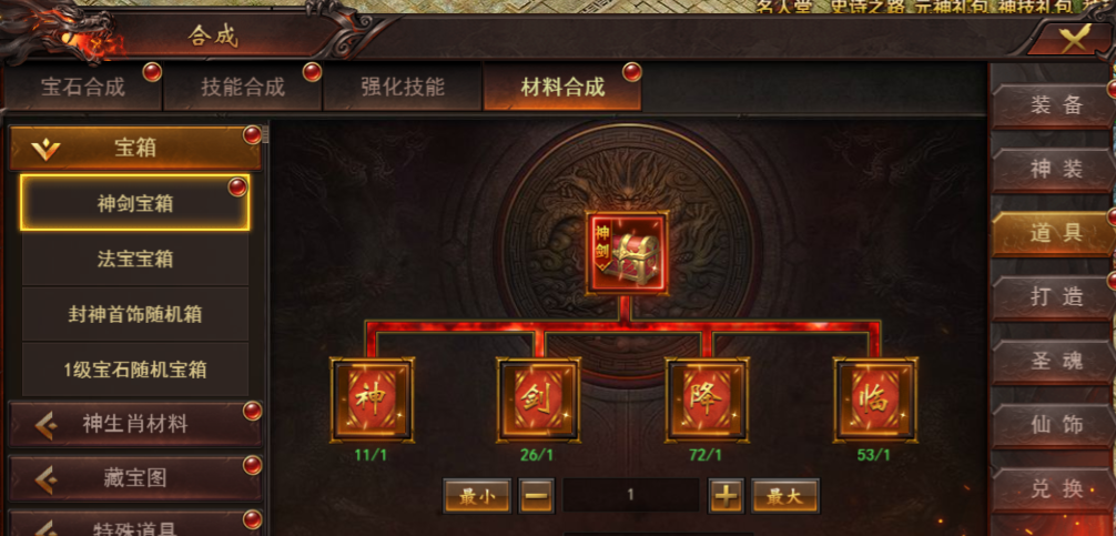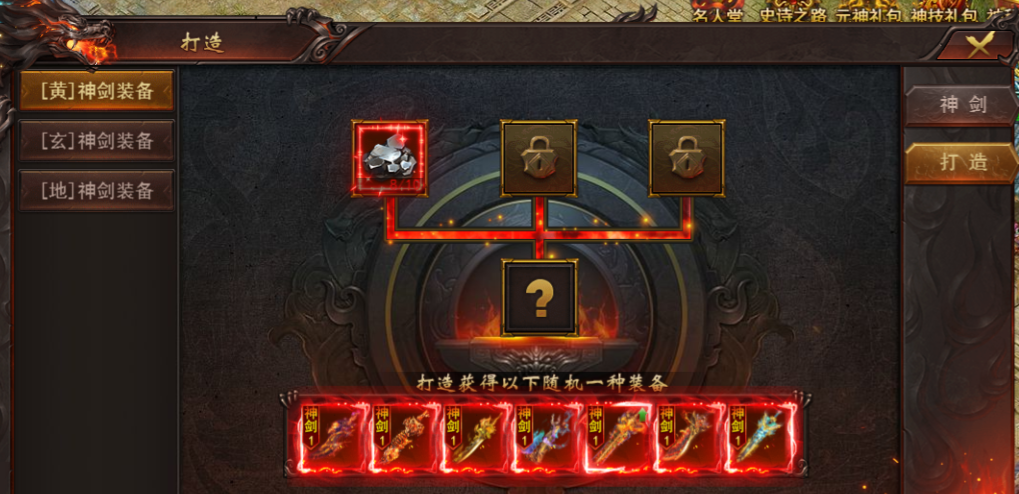 神剑宝箱中有装备、神剑锻造材料百锻石