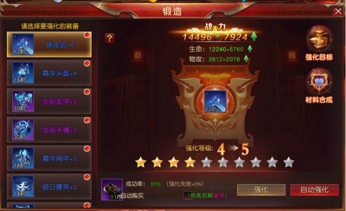 游戏里消耗材料对各个部位的装备进行强化后,提升的等级会始终记录在当前的部位上,实现【锻造等级继承】的效果,因此当玩家获得更好的装备替换后,原有的强化等级依然有效!
