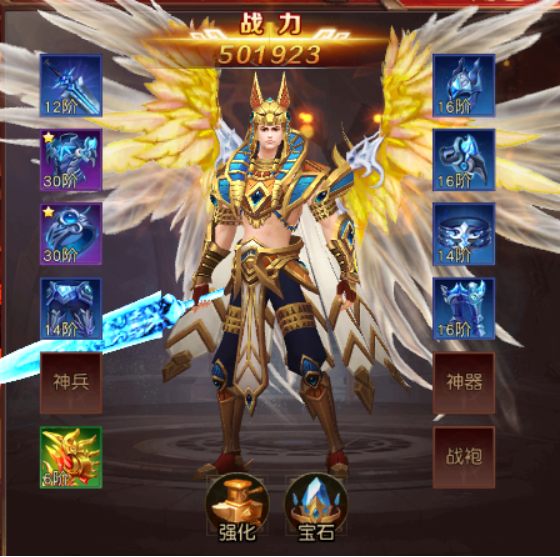 装备系统是游戏的基础系统之一,也是主要提升角色战力的系统,每个角色都可以同时装备8个部位的装备。