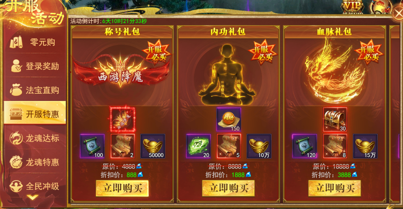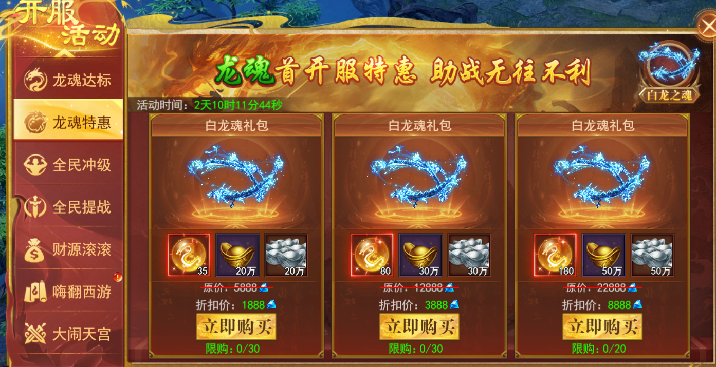6、龙魂特惠(新服前3天)