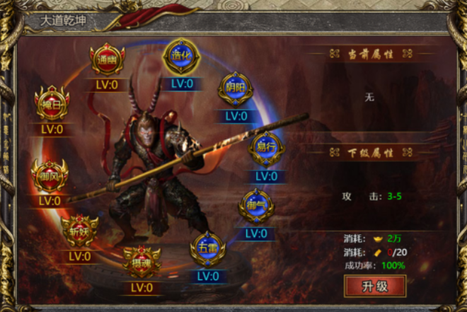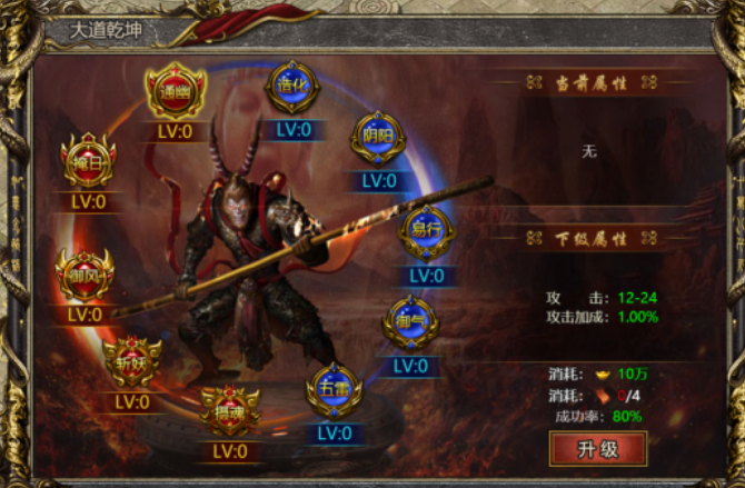 大道乾坤共有10个小系统组成,左侧为高级属性,右侧为初级属性。