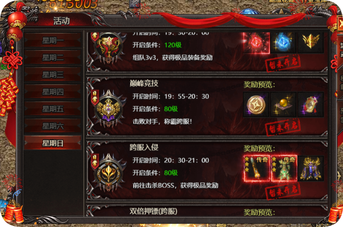 奖励预览:竞猜币、经脉丹、巅峰令